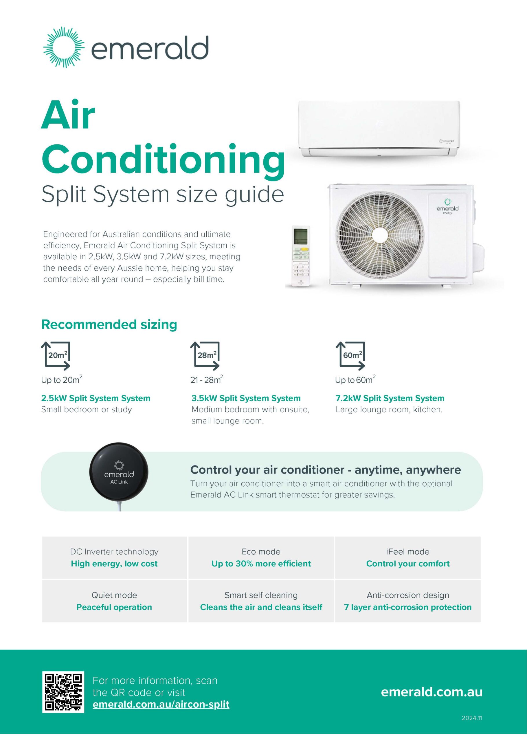 Use this space to add a medium length description. Be brief and give eStay comfortable without the worry of rising energy costs. The Emerald Air Conditioning Split System uses 360° full DC inverter technology, an internal air duct, and advanced louvre fins to deliver outstanding energy efficiency while reducing power consumption.
